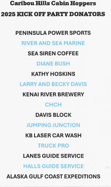 The Caribou Hills Cabin Hoppers is a Non-profit